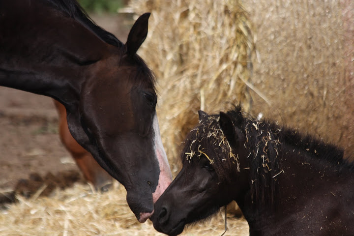 | Dire merci | Merci pour les photos, c'est chouette à voir ![]() Quelle robe a été attribuée à Tee Black : noir ? bai ? ou noir fumé, communément appelé smoky black, c'est à dire une robe de base noire diluée par un gène crème (merci Tayou) ? |