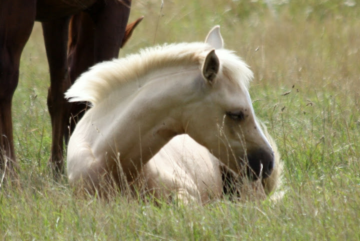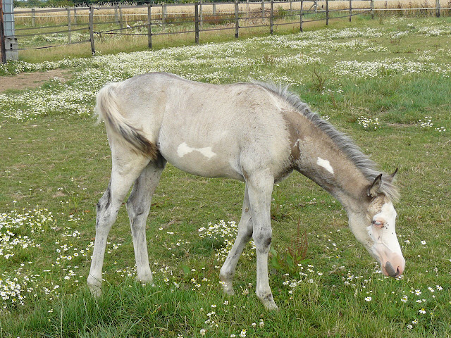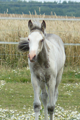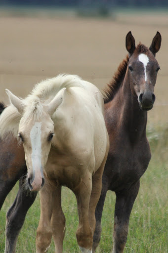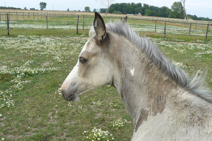 | Dire merci | allez, pour Tina, quelques photos d'Atout qui a amorcé la mue et révèle une jolie couleur bien soutenue sous sa doudoune de poulain ! |