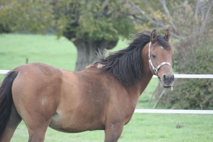 | Dire merci | saby >> les dernières photos que j'ai sont celles de ma visite en juillet .... et avec l'hiver qui se pointe, ça va être difficile d'en avoir (le proprio n'aime pas montrer ses chevaux poilus et boueux) |