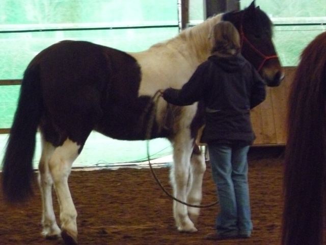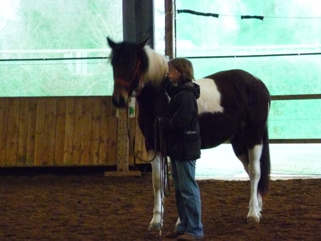Déconnecté | Pour nous c'était stage d'équitation etho dimanche matin avec un prof formé à La Cense. Comme nous n'avions jamais fait de stage, on m'avait conseillé de m'inscrire dans le cours débutant du matin. (et puis de toute façon, l'aprem il faisait un partie monté et vu que Vaya n'est pas débourrée, ce n'était pas pour nous). Alors pour moi ce stage à vraiment été une très bonne expérience. Et pour moi et surtout pour ma miss Vaya. Je l'ai trouver vraiment exemplaire, je suis très contente. L'embarquement en van c'est passé vraiment très bien, autant le matin que l'aprem. Bon elle a eu un peu chaud pendant le transport (1h15 et et pareil au retour) et n'a pas toucher à son foin, mais sinon elle n'a pas bouger du tout pendant tout le temps de trajet. Pour un premier transport, je suis très satisfaite. Une bonne chose d'acquise. |