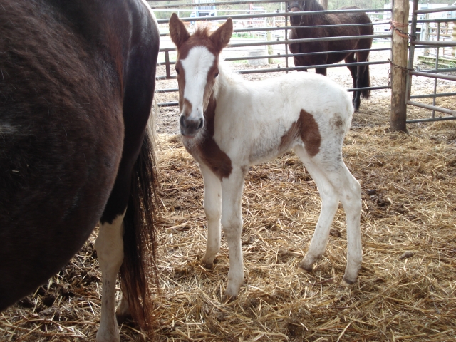 Déconnecté | Après avoir hésité un moment à faire un poste sur ma Louloute, je me lance enfin. Vaya est une pouliche née le 12 avril 2009. Elle vit alors en troupeau auprès de sa mère, son père, d'autres juments et ces demi-frères et sœurs. Elle y est encore actuellement jusqu'à la fin du mois. Et oui, elle sera sevrée fin octobre et viendra enfin près de chez moi. Elle sera dans une pension (chez un agriculteur) à 5 minutes de la maison , j'ai hate !!!! Lorsque je l'ai vu elle était comme les autres poulains : pas manipulée. Il m'a donc fallut un bon moment avant de pouvoir la toucher. Mais points positifs, sa mère est assez proche de l'homme et nous laisse approcher de sa pouliche. Au bout de 15 jours (je ne peux la voir qu'une fois par semaine pour le moment). Ma ptite Vaya se laisse gratouiller les fesses et apparament elle apprécie. Et petit à petit je m'approche de la tête jusqu'à ce qu'aujourd'hui elle me fasse confiance et me laisse la toucher partout et lui mettre le licol. Ce message a été modifié par kita_modo, à la demande de l'auteur.Ce message a été modifié par un modérateur. |