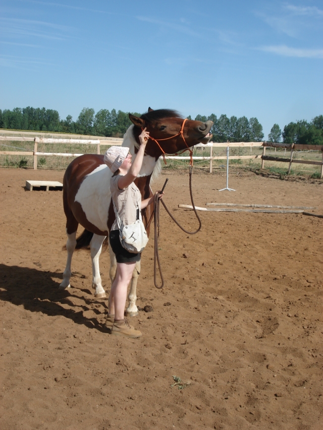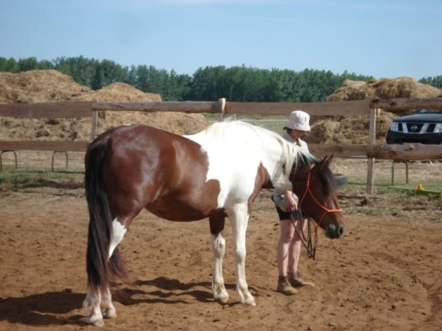 Déconnecté | Après avoir hésité un moment à faire un poste sur ma Louloute, je me lance enfin. Vaya est une pouliche née le 12 avril 2009. Elle vit alors en troupeau auprès de sa mère, son père, d'autres juments et ces demi-frères et sœurs. Elle y est encore actuellement jusqu'à la fin du mois. Et oui, elle sera sevrée fin octobre et viendra enfin près de chez moi. Elle sera dans une pension (chez un agriculteur) à 5 minutes de la maison , j'ai hate !!!! Lorsque je l'ai vu elle était comme les autres poulains : pas manipulée. Il m'a donc fallut un bon moment avant de pouvoir la toucher. Mais points positifs, sa mère est assez proche de l'homme et nous laisse approcher de sa pouliche. Au bout de 15 jours (je ne peux la voir qu'une fois par semaine pour le moment). Ma ptite Vaya se laisse gratouiller les fesses et apparament elle apprécie. Et petit à petit je m'approche de la tête jusqu'à ce qu'aujourd'hui elle me fasse confiance et me laisse la toucher partout et lui mettre le licol. Ce message a été modifié par kita_modo, à la demande de l'auteur.Ce message a été modifié par un modérateur. |