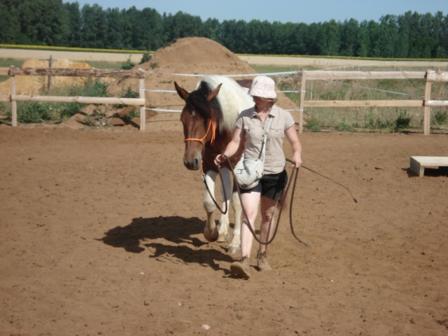 Déconnecté | Au départ je me suis mise le long de la lisse de la carrière. Je demandais une fois les épaules et une fois les hanches et petit à petit j'ai demander les 2 en même temps. Maintenant je lui demande aussi par aspiration et elle le fait presque mieux que quand je la "pousse". Et puis une fois acquis le long de la lisse je me suis mise une barre par terre pour visualiser un peu mieux. Les antérieurs d'un coté et les postérieurs de l'autre. Quand je vois qu'elle bloque je reprends de la même manière. Les épaules puis les hanches et hop on fait quelques pas latéralement. |