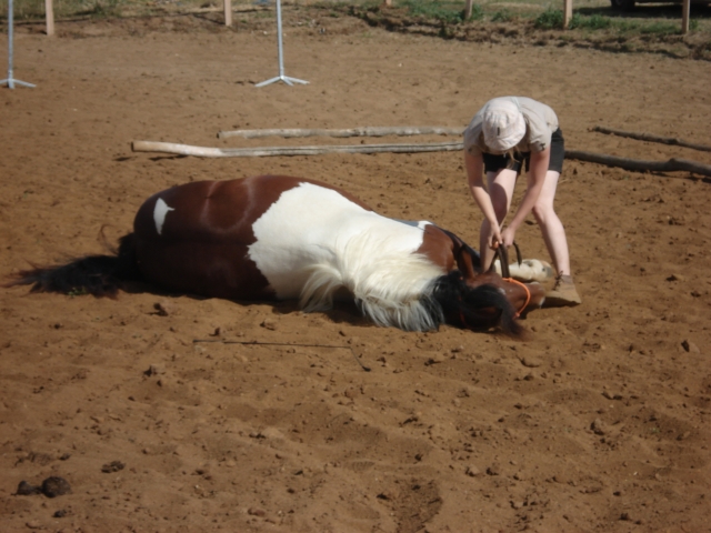 Déconnecté | Euh comment expliquer. Ben je lui pousse les épaules pour qu'elle croise ces antérieurs. Je met une main au niveau de sa joue (à peut près) et une sur l'épaule. Comme sa je suis face à son encolure et la je fait un pas en avant en lui demandant de céder à la pression que je lui met sur la joue et l'épaule. Parfois elle essaye d'avancer alors je lui demande un pas de reculer et je cède au moindre déplacement dans le bon sens. J'essaierai de faire une vidéo si tu veux. |