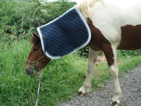 | Dire merci | Quoi ? que vois-je ? un chvo maltraité av un tapis sur la tête ![]() Le bleu lui va pas mal en passant ! En tt cas c chouette elle a l'air d'avoir vraiment bon caractere ! |