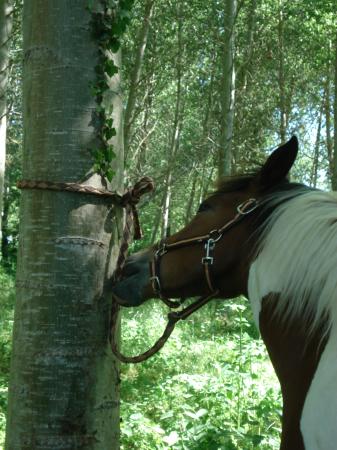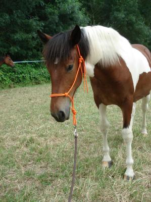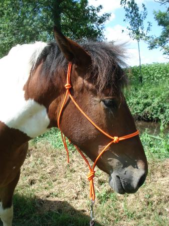 Déconnecté | Oui, c'est pour ça que je me suis dit que j'allais m'y mettre et puis là c'était vraiment l'occasion. Enfin, elle a quand même tester la solidité de l'attache. Du coup je l'avais mis en licol plat pour pas risquer et je l'avais attaché directement à l'arbre. En tirant à un moment (au début elle a casser le mousqueton du licol ; vu que la longe était attachée directement au licol, c'est pas la longe qui a cassé, mais carrément le mousqueton du licol). Mais bon après j'ai rafistolé ça et impec, elle a été sage donc je l'excuse, faut bien qu'elle test c'est logique. |