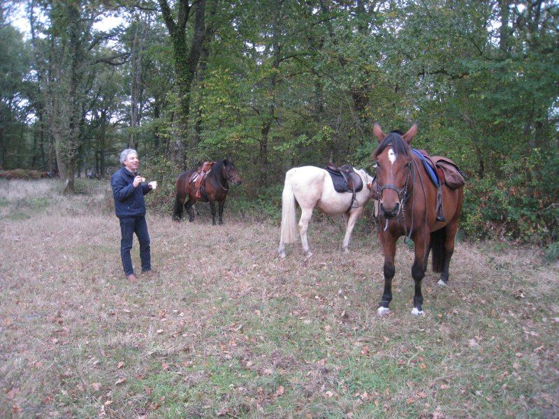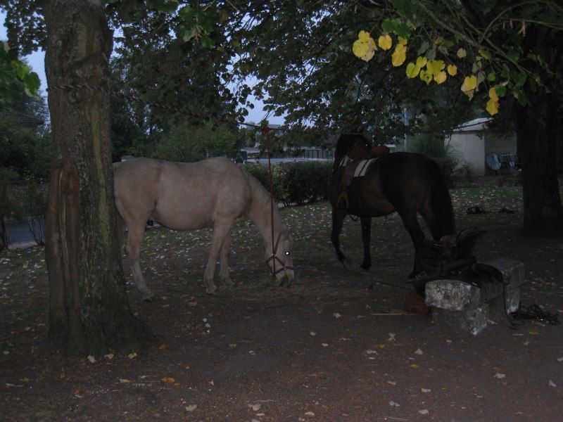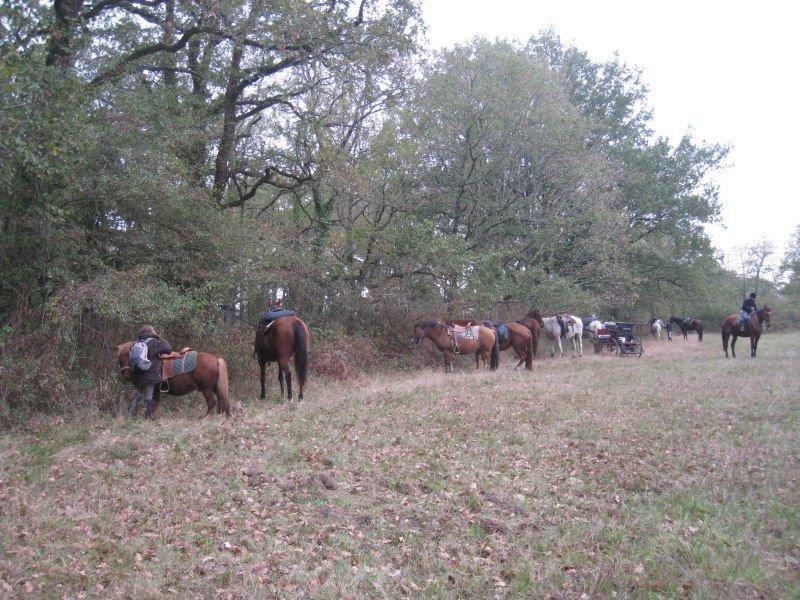| Dire merci | Nous avons 19 Km à parcourir le matin. A peu prêt à mi-chemin, c'est le ravitaillement!! On met pied à terre ![]() Au menu : thé, café, chocolat chaud, vin blanc, vin rouge, cidre.... sandwichs paté, rillette, saucisson à l'ail... morceaux de boudin noirs froid, camembert, fruits... Y'en a pour tous les goûts!! Après s'être rempli la panse, on repart... ![]() Y'avait une cinquantaine de chevaux en tout, quelques attelages mais surtout des cavaliers ![]() ![]() |