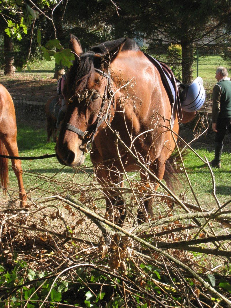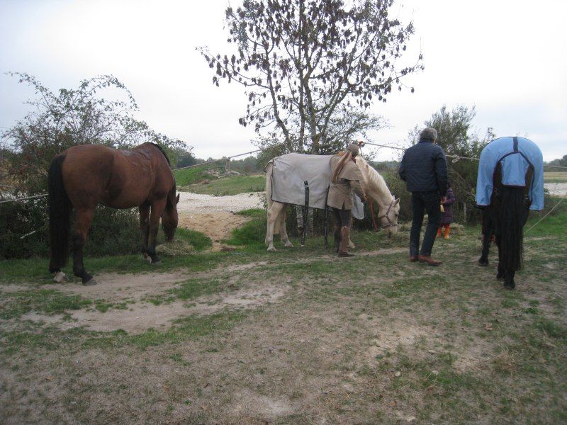 | Dire merci | Les chevaux sont moins allants que le matin! Mais après un petit galop ils retrouvent un bon rythme... On croise d'autres animaux ![]() ![]() ![]() Toujours des étangs... ![]() ![]() 6 Km avant l'arrivée, ravitaillement!!! Cette fois-ci c'est fruits et quatre-quarts! Boissons toujours au choix! Lann Bi prend des postures...particulières! ![]() ![]() Instant rare, les oreilles en avant!!! ![]() ![]() Vers 17h la boucle est bouclée! On reçoit un joli flot, on prépare les chevaux, on charge et je rentre à l'écurie! ![]() C'était une superbe journée!!! L'assoc organise 3 randos par an : - une journée au printemps, en général le week end qui suit le 8 mai - 3 jours en août, en étoile, avec des animations le soir - une journée en automne L'organisation était excellente!!! (en plus y'a possibilité d'arriver la veille pour ceux qui sont loin!) Je pense y retourner si possible en mai et je recommande vivement cette évènement à toutes et à tous!!!! |