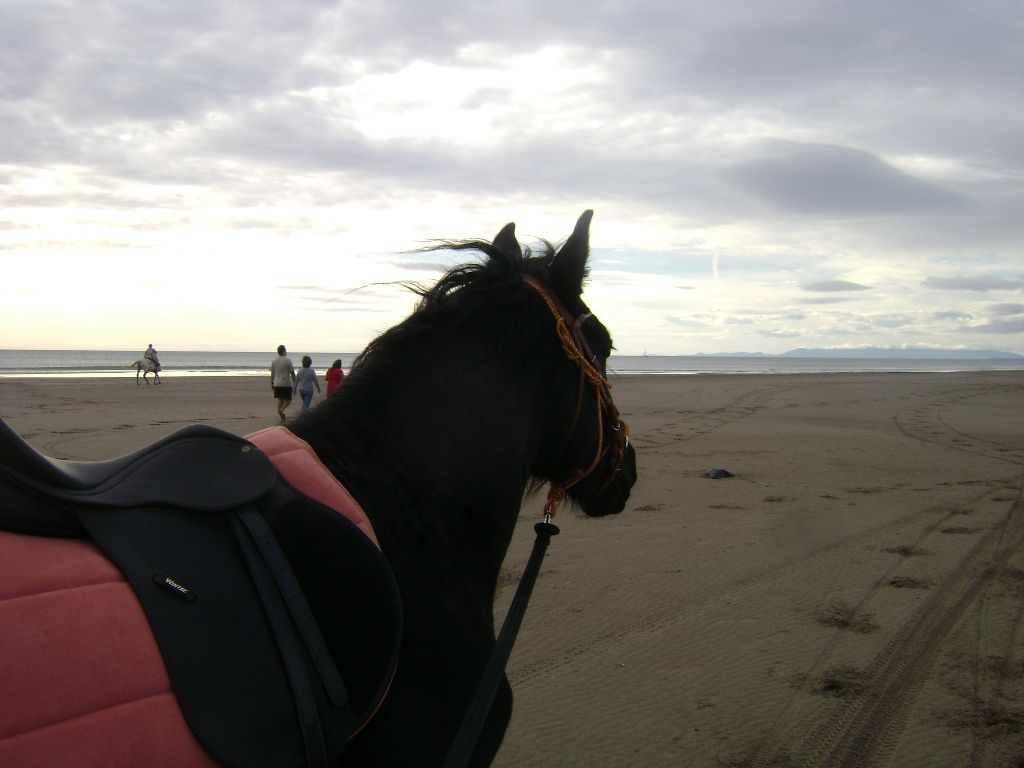) : Voir si Sultan reste sympa, après un transport de presque 2 heures, dans un endroit qu'il ne connait pas, avec des chevaux qu'il ne connait pas, pendant une longue rando, dont sur la plage