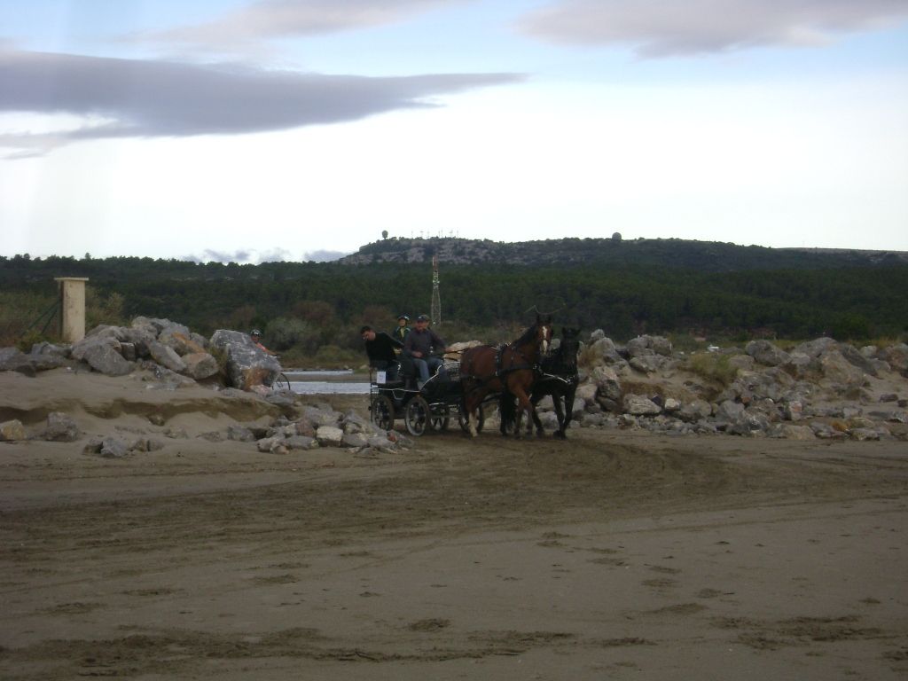 | Dire merci | Voici ma fameuse "destination mystère" ![]() En effet, hier soir, Peg et moi sommes partis avec Sultan rejoindre Nath34 et sa troupe à la mer ![]() ![]() Le principe : On arrive le samedi dans l'aprem, et on fait une rando le dimanche la journée, organisée par l'AAAA (L'association d'attelage de l'Aude )Une rando de 16km ou 23km, dont 3 km de plage, qui a été ouverte exprès pour l'occasion ![]() C'était mon rêve d'aller à la plage avec mon cheval, un rêve réalisé grâce à Nath, je te remercie encore de m'avoir invité, c'était vraiment idyllique ![]() Le chalenge (de mon côté ) : Voir si Sultan reste sympa, après un transport de presque 2 heures, dans un endroit qu'il ne connait pas, avec des chevaux qu'il ne connait pas, pendant une longue rando, dont sur la plage ![]() |