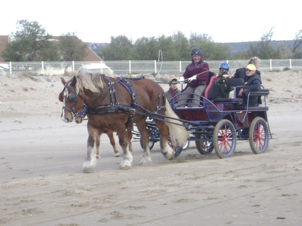 Le chalenge (de mon côté ) : Voir si Sultan reste sympa, après un transport de presque 2 heures, dans un endroit qu'il ne connait pas, avec des chevaux qu'il ne connait pas, pendant une longue rando, dont sur la plage