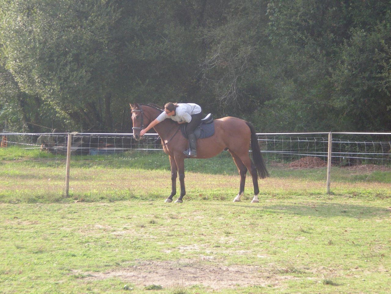 | Dire merci | C'est clair: pauvre cheval!! En même temps son regard en dit long... Il n'est pas dupe!! J'en profite pour mettre Katia dans la galerie photo des Aquitains, elle venait de se taper un petit délire avec sa pote, ça allait mieux après: |