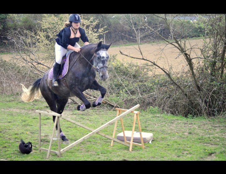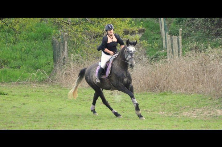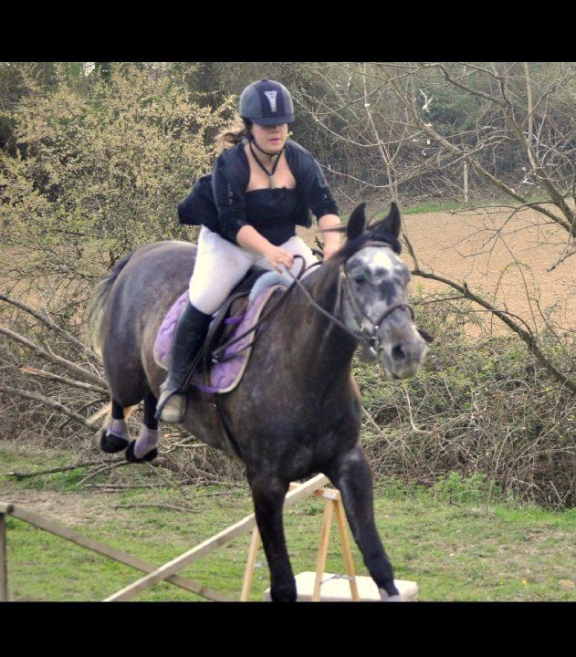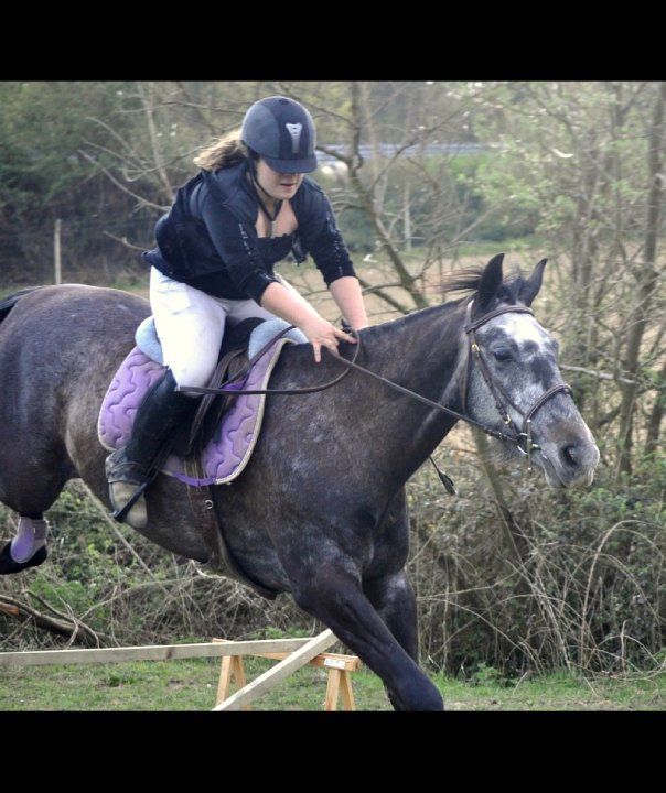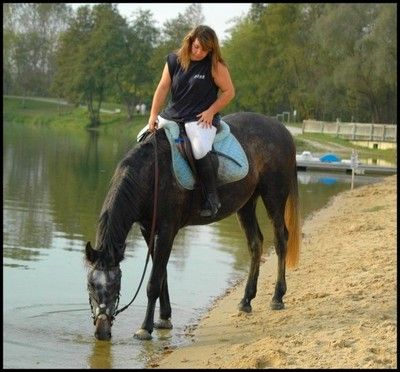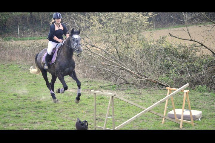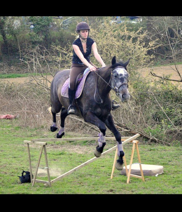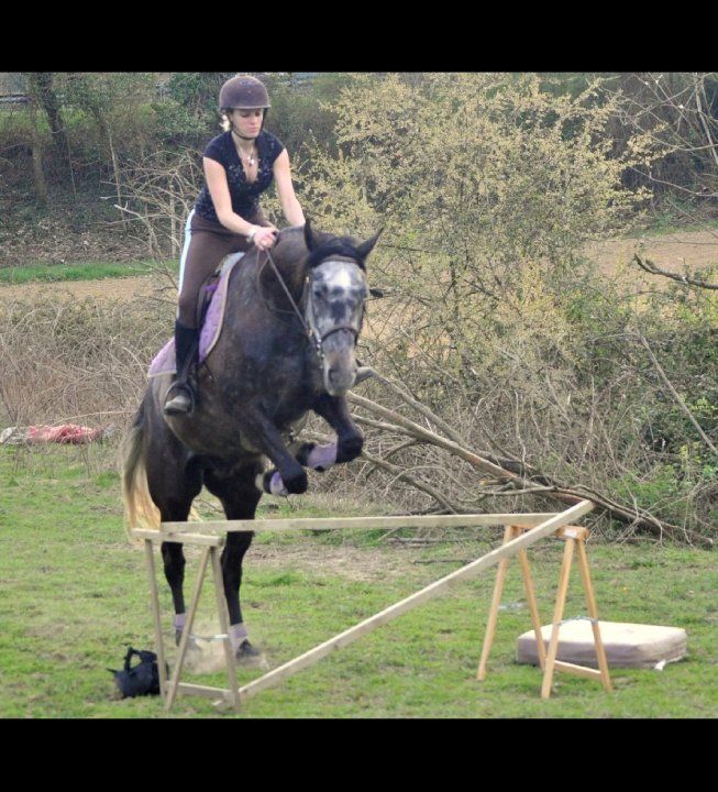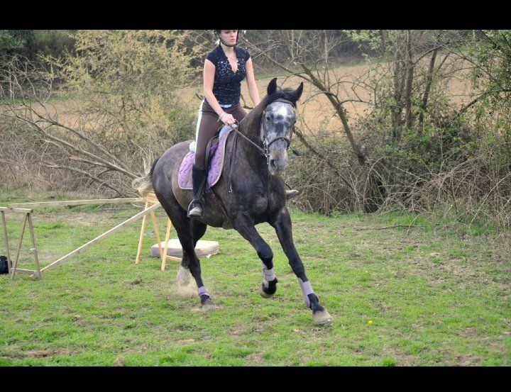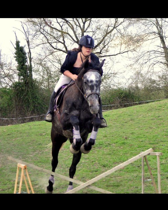 | Dire merci | Certain(e)s ne setont pas content mais bon .. Petit résumé de hier soir a la séance de saut .. Donc j'arrive au pré avec Pauline, une copine, on sifle les loulous, ils arrivent 5 min plus tard Une fois arrivé on décide que Pauline monte In Love et Moi Safir, car j'avais un peu envie de le travailler vraiment ! ![]() Donc on les selle et tout et tout, on monte, et on part dans le pré en face du mien pour la détente.. La un Safir EXTRA !! Ca fesait longtemps que je n'avais pas travailler vraiment.. Enfin pour le moment je lui demande juste qu'il s'incurve bien, qu'il se place, qu'il avance et qu'il parte bien au galop, bref rien d'extraordinaire mais pour un 4 ans ca suffit je pense. Donc il a fait ca parfaitement, il était tout léger dans la bouche etc et tres en forme, ca fait plaisir ! ![]() Donc 15 min plus tard nous voila parti pour le aut, quio se passe en bas de mon pré. Alors on décide de faire cheval par cheval, Je laisse donc Safir dans le carré avant le pré ( collé au pré mais cloturé .. ), et on commance par Pauline et in love. Comme ca si ca tombe ben je remet en je peut prendre des photos aussi .. Donc elle saute, il était bourré de gaz, bref je détaillerais sur son post Puis apres je monte aussi .. [ voir son post dans quelques minutes ) ! Ensuite une fois in love fini, c'est le contraire, on met in love dans le carré et on prend Safir. Je commence, quand il a vu l'obstacle il étais comme une furie ! ![]() A Mon avis il était content de sauter ! Il ne s'est pas arrété, pas une hésitation, RIEN Bon okay c'est pas gros mais je suis contente quand meme ! Pauline monte, il l'embarque ce pti Imbécile ( j'avou que je me suis faite embarqué aussi vu la pech qu'il avait ! ) ![]() Et donc .. Voila les photos de safir :: [ désolé de ma geulle a cheval .. c'est monstrueux ! ]![]() ![]() ![]() ![]() ![]() ![]() |