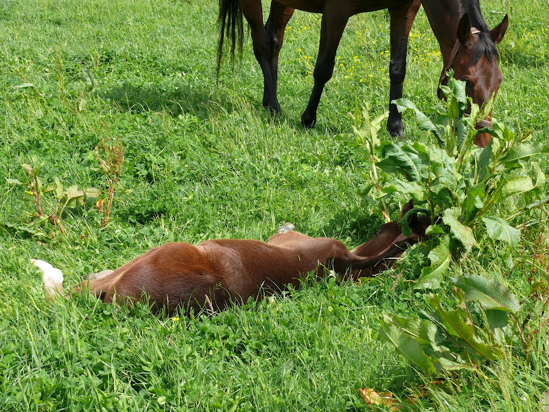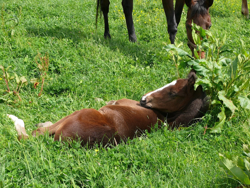 Déconnecté | Pour le bon développement des poulains apres quelques semaines seuls avec leur maman, ils sont tous intégrés dans la meme pature (avec les mamans bien sur ). Comme ca il peuvent jouer et apprendre ensemble les codes de la vie en société cheval Mais bon ca n'empeche pas de faire la sieste Le Roc Virgule Message édité le 16/11/09 à 20:36 |