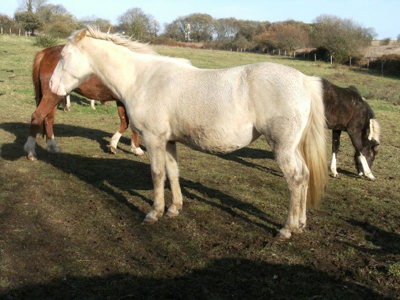 | Dire merci | laska: une prochaine fois alors peut être, mais je n'y vais pas souvent (Lyon c'est l'autre côté de la france pour moi!) westhani: Oui, l'oeil droit: ![]() et Boggies a les deux yeux bleus: ![]() Bah Sweety je le laisse grandir tranquillement. Je l'ai monté pas mal cet été, on a fait des promenades en groupe, il est super gentil (même quand certains partaient au grand galop sans prévenir, il bougeait pas une oreille...). Je le monte de temps en temps histoire qu'il n'oublie pas ses acquis, mais en ce moment je travaille surtout mes jumentsn et Sweety a pas mal grandi dernièrement;, il s'est affiné un peu, à un moment il faisait balourd. Il est castré depuis ses 7 mois... Pour les épreuves loisirs, c'est sûr qu'en comportement y'a aucun problème (elle est super sûre;, passe partout), mais les juges n'aiment pas les allures des chevaux américains (c'est sûr que c'est pas des welshs avec des allures relevées!), donc pas sûre qu'elle soit élite en allures... Merci tout le monde! |