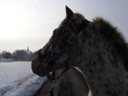Déconnecté | oui bonne séance !![]() Plutôt courte pour ne pas reprendre trop dur quand même, on va faire les choses progressivement Au départ j'ai eu du mal à capter son attention, nouveau lieu olbige... il a fait son tour puis on s'y est mis ! Mais le terrain était limite, encore beaucoup de neige donc glissant dans l'ensemble. J'ai focalisé le travail sur la remise aux ordres, pas, arrêt, trotter. Il voulais un peu galopper, mais je ne l'ai pas encouragé, j'ai préféré le travailler au trot pour éviter qu'il ne se fasse mal, un bon échauffement est primordial, surtout lorsqu'il veut faire le foufou... Et puis un chouillat de dressage en lib', reculer, et pas espagnol ! c'était cool, il avait l'air motivé ! |