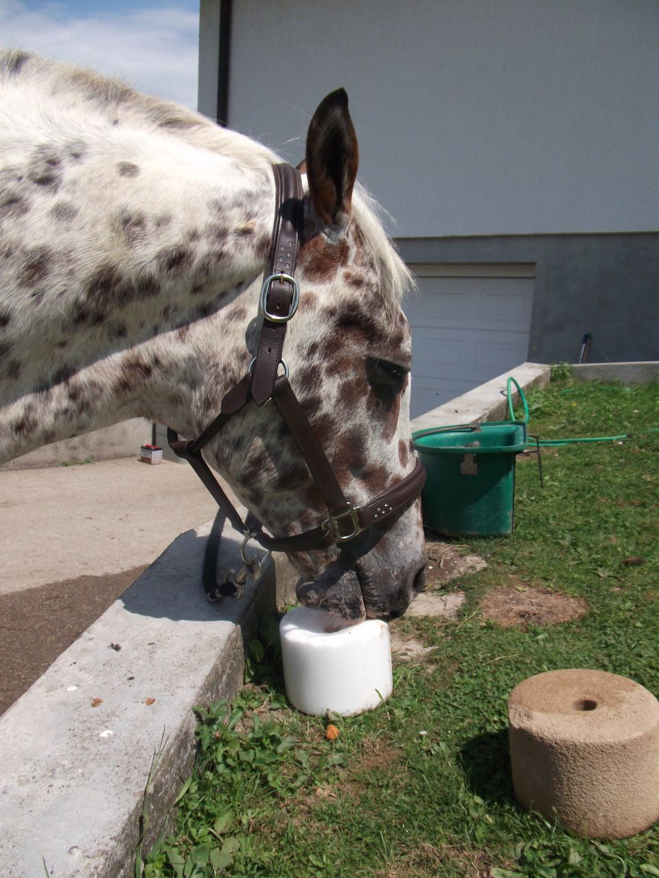 | Dire merci | J'aime beaucoup ton nouveau licol. mais bon strass c'est pour les fifille hein..... je m'aperçois que Sioux est en train de s'endormir sur son bloc de sel mais oui c'est trop drole!!! je suis morte de rire Il est super sympa ton tatouage, bien bien fait. par contre t'as vraiment du morfler, il est assez grand et bien détaillé ![]() |