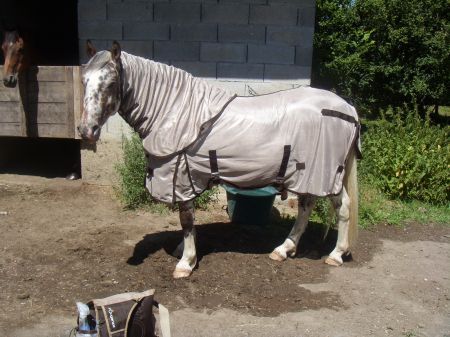 Déconnecté | Oui je suis contente pour le travail ! Sinon, oui il est maintenant affublé d'une couverture la journée... foutus insectes, foutue dermite...mais bon, le matin lorsque j'arrive pour lui mettre, il ne réchigne pas |