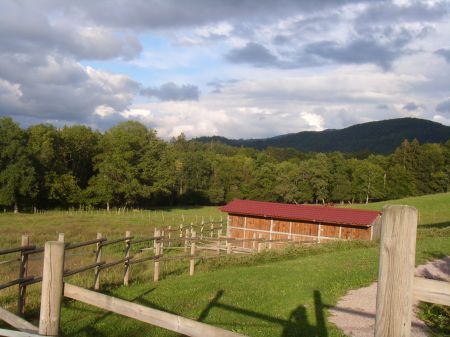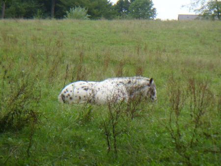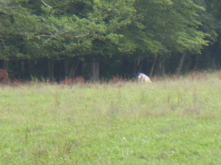 | Dire merci | genial ca alors il s'est deja couché parmi le troupeau en plus tu venais juste de le remettre au pré il a eu un sacré coup de barre ya beaucoup de balade autour? c'est en foret? |