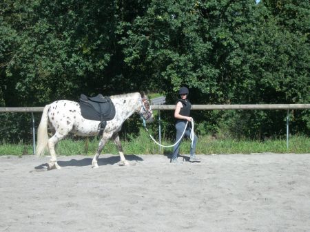 Déconnecté | Super séance aujourd'hui !! ![]() Bon comme d'hab on était en tête à tête donc pas de photos... Alors on a commencé en main, au pas, tour de la carrière au deux mains, puis mise en place d'un petit slalom et de barres par terre. Ensuite je l'ai longé, au pas, au trot, aux deux mains. Tip top, Sioux était très à l'écoute ! ![]() Puis j'ai travaillé le montoir, à gauche, puis à droite. A cheval ! Mise au pas sur la piste, arrêts, départs au pas. Bien Après on a fait le slalom, aux deux main (c'était la première fois!), et passage entre deux barres au sol et demande de l'arrêt entre les barres. Sioux a vraiment progressé, son pas est plus fluide, mes demandes deviennent plus précises car mieux comprises ! C'est cool !!! ![]() Enfin, cerise sur le gâteau.... je lui ai demandé le trot sur la longueur !!! On a fait notre premier trot monté !!!! ![]() ![]() ![]() ![]() Je suis très fière de mon Sioux, ce fut une très agréable séance ! |
