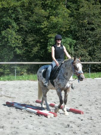 Déconnecté | Encore une super séance aujourd'hui, et avec la présence d'Aaricia !!! Ce qui veut dire des photos à cheval !!!![]() ![]() ![]() Alors Sioux a été génial, du coup notre séance n'a duré que 30 min, on s'est arrêtés sur du bon travail ! ![]() On a bossé sur un petit slalom (assez serré), et des barres au sol, puis le trot et quelques transitions trot-arrêt. Je suis très fière de lui... Place aux photos ! |