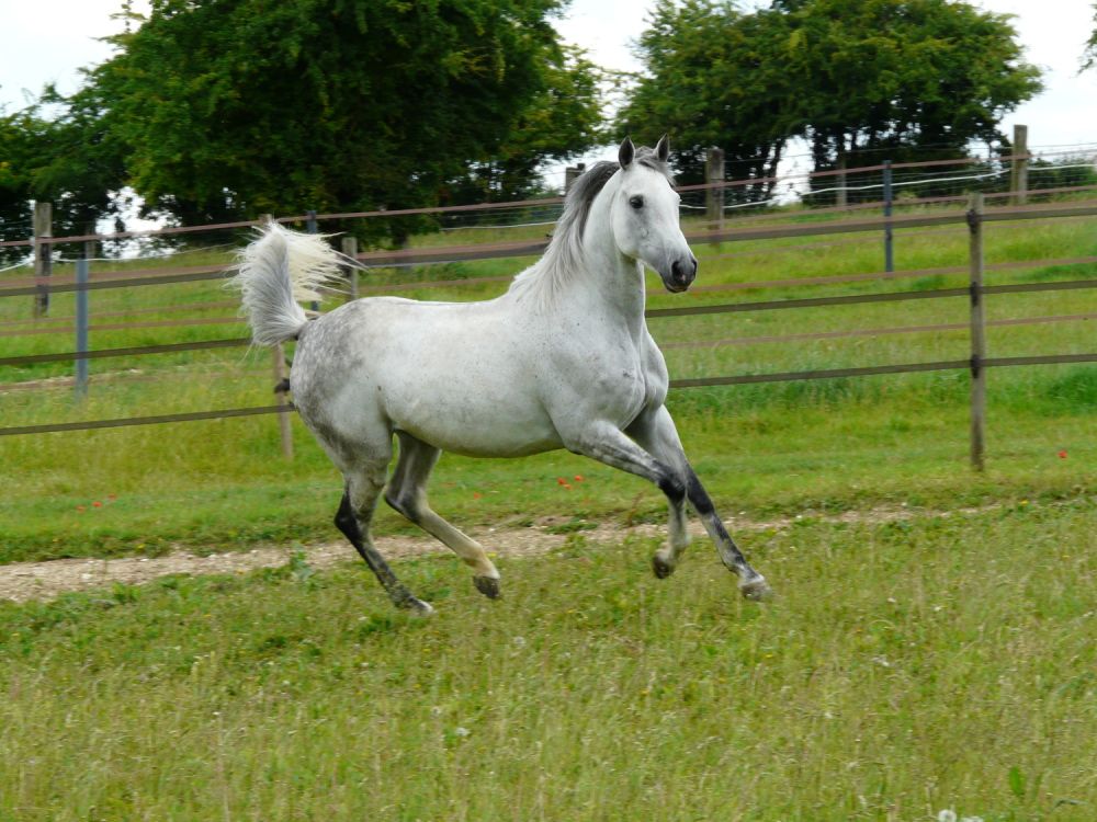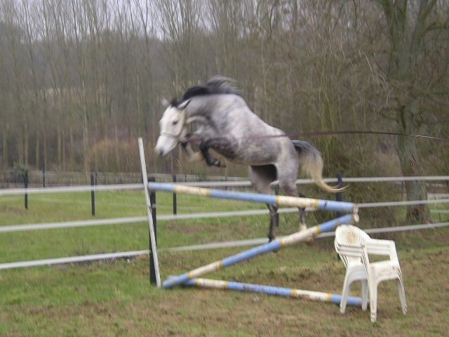 | Dire merci | Je comprends pourquoi j'ai toujours adoré les gris! Elle est belle!!! Ses allures... j'adore!!!Je l'ai acheté à 3 800 euro... Parait que c'est un peu cher car il n'a pas fait de résultats en CSO (mais le CSO, ce n'est pas ma priorité dans l'immédiat, c'est plutôt la balade ou l'endurance) et qu'il a une fragilité des ligaments aux 2 antérieurs, mais juste une fragilité, pas de gros problèmes!Mais bon, un coup de coeur comme je disais, je ne pouvais pas le laissé passer... Toujours là chausette586! Merci de me suivre, ça me fait plaisir! |