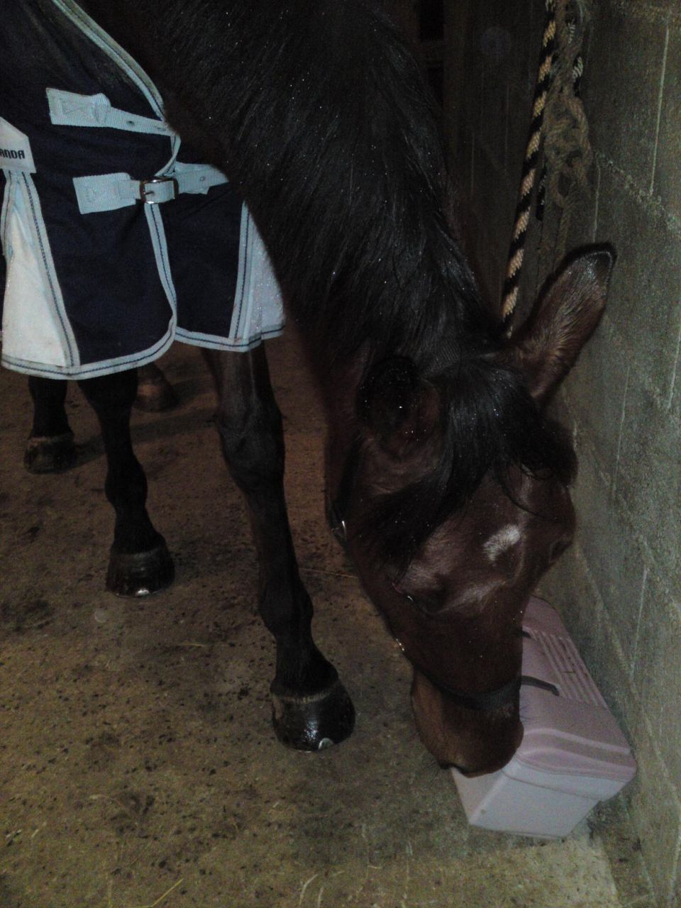 | Dire merci | Oui pour l'alimentation, c'est foin à volonté et 6L de granulé par jour pour qu'il se retappe (et un peu de boulot pour muscler tout ça!) |