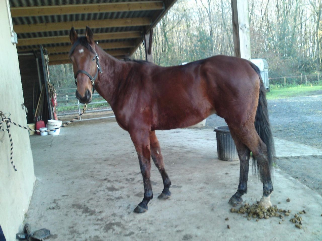 | Dire merci | Il est en paddock (que de la gadoue en ce moment) donc il n'a pas trop d'espace pour évacuer le trop pleins d'énergie. Mais demain comme je ne travaille pas, je vais le bosser en longe une demi heure et monter une petite demi heure, la matin. Je vais bosser léger quand même parce que le soir, j'ai mon cours d'équitation... Je suis un peu stressé parce que c'est un cours d'obstacle et que pour le moment, j'ai juste fait quelques petites saut comme ça avec lui. J'espère que ça va bien se passer! Enfin, je sais que ça va bien se passer, donc il faut plutôt que j'écrive: j'espère que je vais trouver ma place avec lui sur ce cours d'obstacle! ![]() |