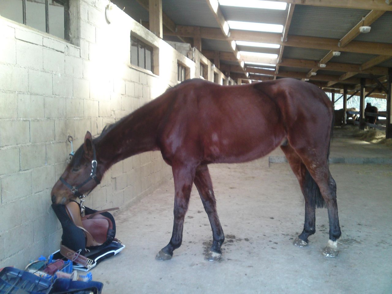 | Dire merci | Aujourd'hui, il a déboché plus tôt. J'ai un peu alluciné quand je suis arrivée au club et qu'il m'attendait en pansant Lasco... ce coup là, il me l'avais jamais fait! Ça, c'est trop mignon! |
