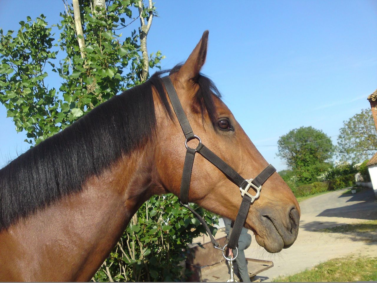 | Dire merci | Et bien voilà le post photos de mon Lasco... Ca fait maintenant un peu plus d'une semaine que sa vie a croisé la mienne. Un vrai coup de coeur. Malgré mes doutes et mes incertitudes, j'ai vraiment craqué sur lui dès que je l'ai vu... Petit pur sang... (voir le titre du post), ce n'est pas vraiment ça! Du haut de son mètre 70, on est bien loin du petit cheval que je voyais dans mes rêves! Mes rêves... On voit tous notre cheval de rêve. Le mien était plutôt petit ( ), rustique, gris ou tacheté. Mais je l'ai bien vite oublié ce cheval imaginaire... Lasco a pris ça place. Et je ne le regrette pas... Assez parlé, place aux photos! |