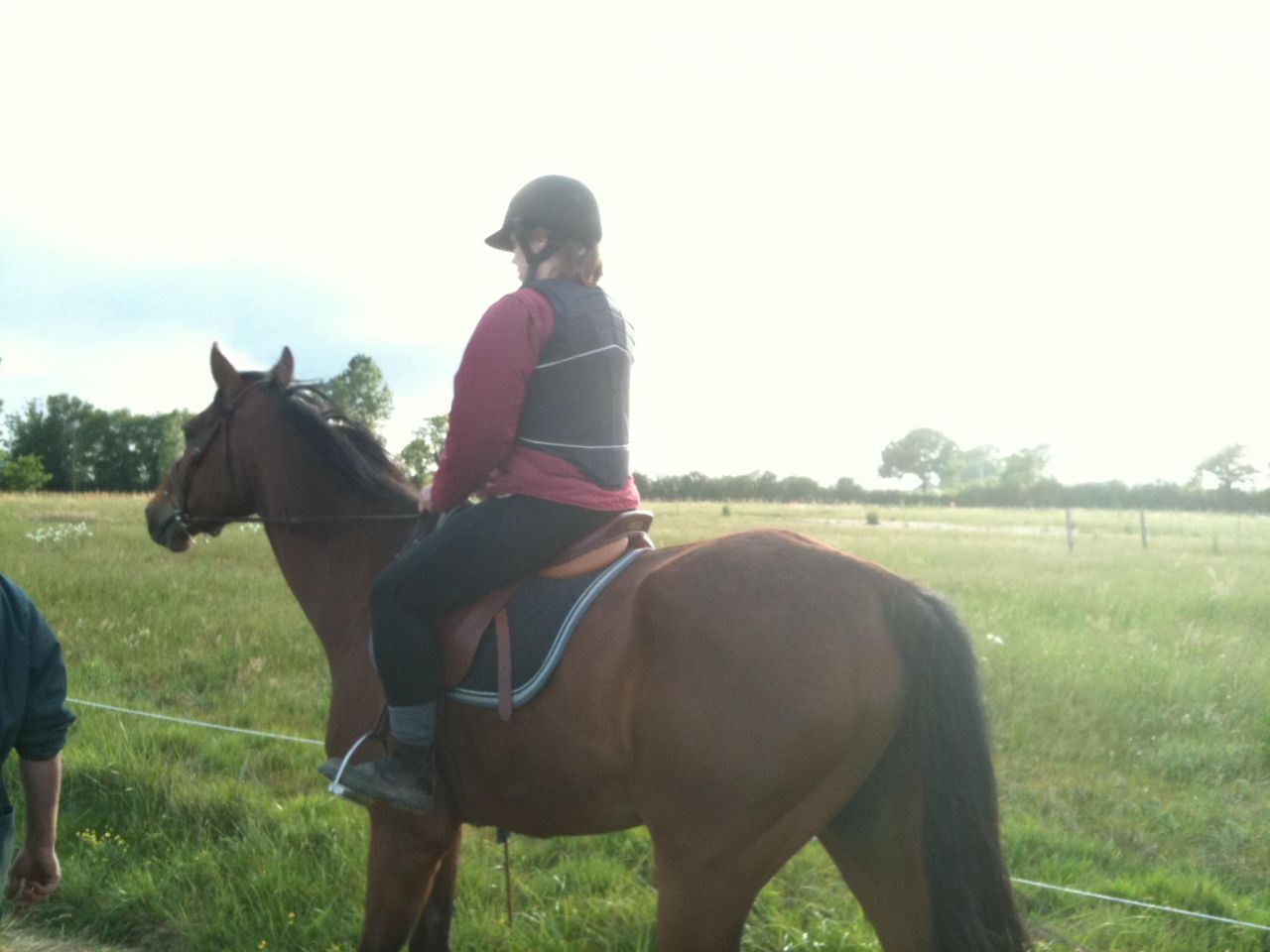 | Dire merci | Si tu as peur en balade, mets lui au début une étrivière autour de l'encolure. Cela te rassurera et permettra de te raccrocher en cas de mouvement imprévu sans tirer sur la bouche. J'ai toujours fait ça avec des jeunes chevaux "remuants". |