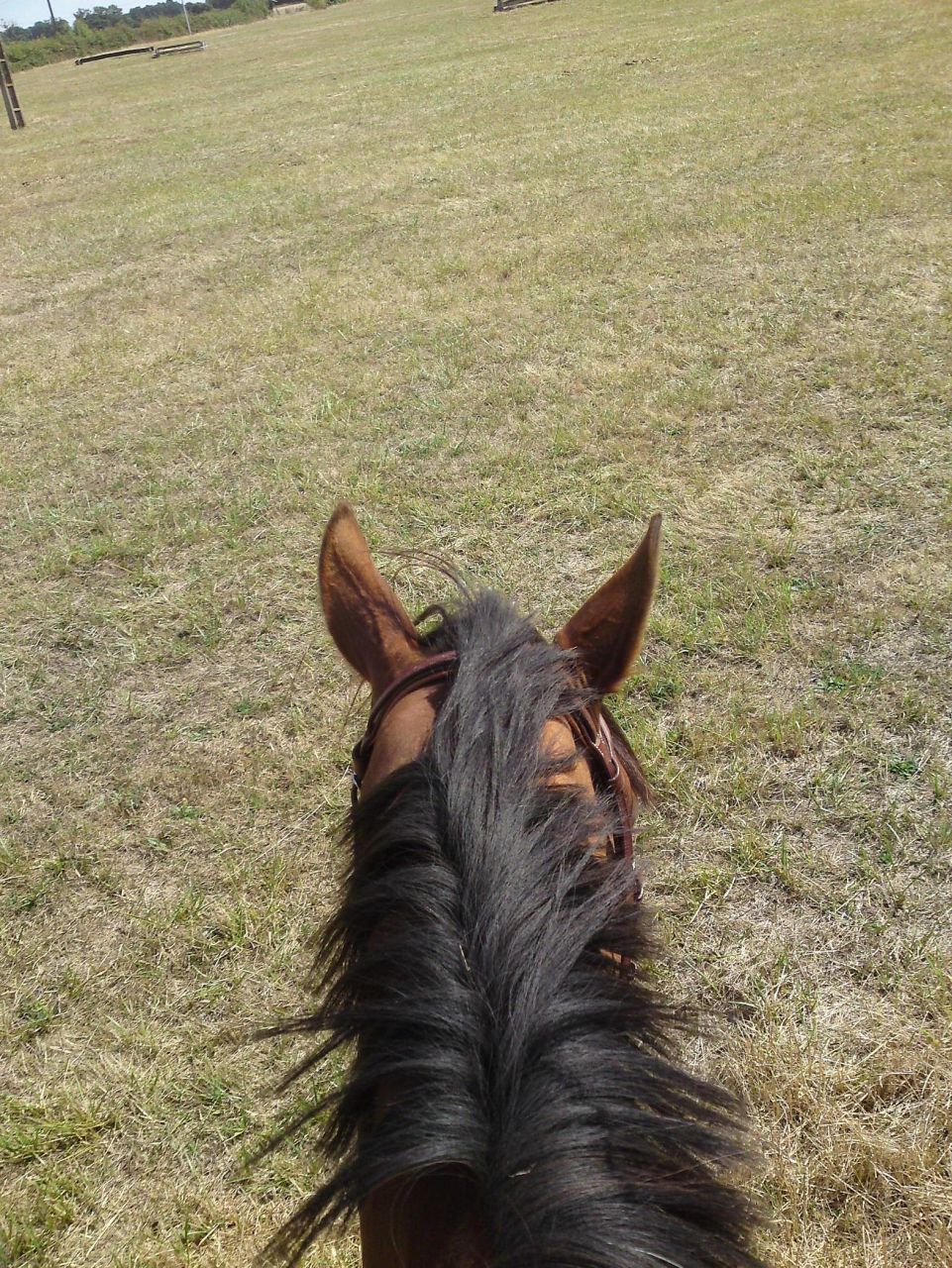 | Dire merci | Que dire à part que mon cheval est vraiment génial... Petite balade comme il était prévu. On fait le tour des patures en évitant les moutons (on ne va pas tenter le diable pour notre 1ère sortie depuis longtemps). Lasco sage, qui passe devant (avec hésitation quand même), qui est curieux mais sage. Au bout d'un petit quart d'heure, je prends le trot. Il se dendine, une vraie anguille, mais je me suis éloignée du copain, je trotte sur un (très grand) crecle. Ca se passe bien, je prends le galop. Et là... il n'avance pas! Je suis fière de lui, je vais faire ça plus régulièrement. ![]() Limite, je pense tenter une sortie solo. A voir. Depuis le temps que je voulais la faire cette photo... ça y est! ![]() Je suis retournée dans le manège après, je voulais le travailler un petit peu... Et bien il a très bien su me dire que c'était une erreur... La prochaine fois, je ferais le contraire; 10 minutes de petits boulot dans le manège et la balade après! ![]() |