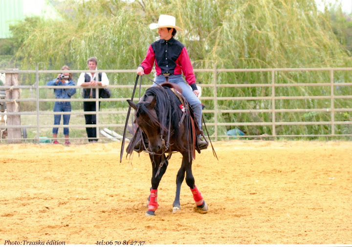 | Dire merci | Il tourne en tri de bétail et working cow sous les fesses d'un copain... Il n'a pas d'habitation vraiment fixe! JC, son cavalier, a une maison dans la Drome, je crois, mais il vit plus souvant dans son camping car, avec le van au cul... |