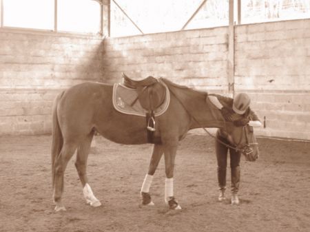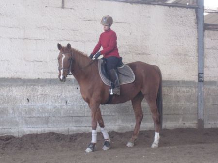 | Dire merci | Hello! Au fait, j'ai pas raconté ma séance de longe d'hier! Donc hier, séance de longe! ![]() Je l'ai longée en gogue juste à main gauche... Faut savoir que la longe avec enrênements je n'ai pas souvent pratiqué sur elle et quand j'en mettais un, je ne le branchais pas! ![]() Hier soir, après quelques tours au pas et trit, je branche donc l'engin! ![]() Elle a bien bossé dit donc! engagement, dos qui travaille et tête en bas, pas du tout contre l'enrênement! Ca m'a fait plaisir à voir! Par contre, de temps en temps avec la tête en bas, elle tombait sur les épaules! avec du boulot, ça va venir!![]() Je la longerai à main droite dans la semaine avec le même procédé! ça risque d'être plus dur pour elle car moins en équilibre à cette main là! Ce soir, séance montée avec galopage si elle est aussi bien que dimanche! |