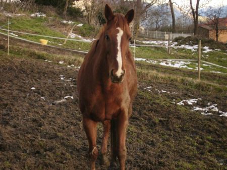 | Dire merci | Je vais l'armer! Bon voici quelques petites photos pour vous faire patienter Lady qui attend patiemment que môman aille la chercher! ![]() L'état actuel de son pré après la neige... ![]() ![]() Au début de travail avec des rênes un peu longues... [url=https://www.1cheval.com/membre/services/photos/] ![]() [/url] |