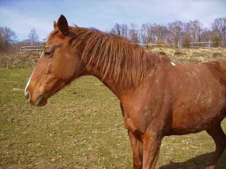 | Dire merci | Dimanche jdevais le pousser j'aime pas ça ! au pas c'etait vraiment un pas de touriste quoi lol ! M'enfin on est pas prêt de sortir en TREC ou en endurance (si il est assez entrainé jtesterai ptet en juin !) |
