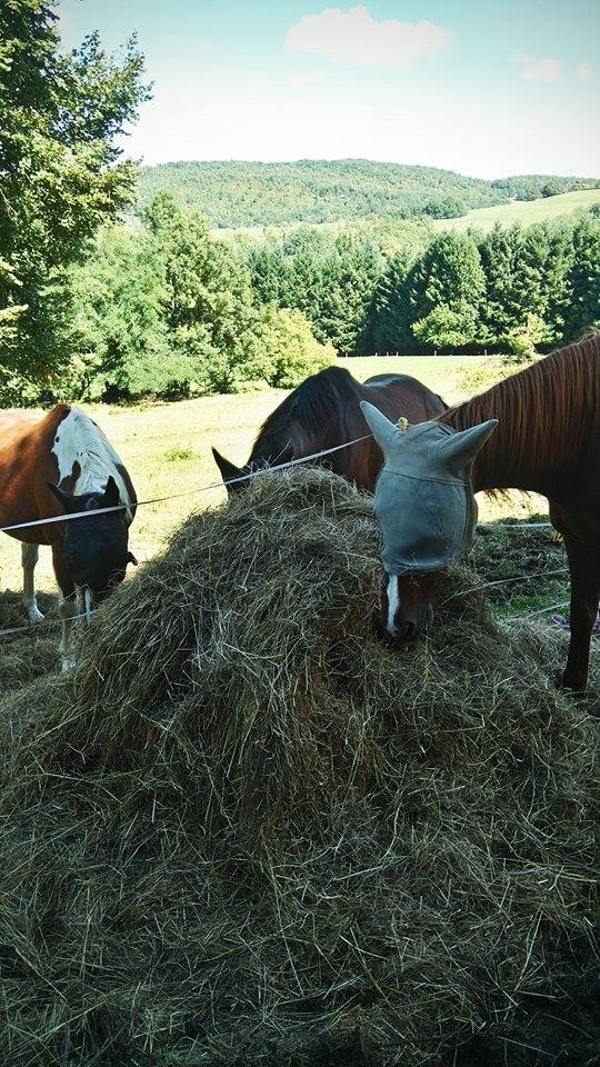 | Dire merci | Petite photo de Scooper en train de patienter sagement pour le pansage![]() Hier, je l'ai ramené dans la cour de nouveau et RAS, un ange ![]() J'ai fait de même avec Lady et comment vous dire que ça a été beaucoup plus dans le stress je l'ai ramené dans la cours, je l'ai brossée vite faite, donné une pomme pour féliciter et je l'ai ramenée au pré! Elle aura eu le temps de faire caca et pipi dans ma cours Je vais recommencer tous les jours aussi avec elle jusqu'à ce qu'elle se calme! Navire l'a appelé au début puis il s'est ensuite calé avec Scooper. Je continue également le fait de mettre Scooper avec eux la journée et séparer tout le monde le soir pour la nuit Il va lui falloir du temps pour trouver sa place car Lady le chasse toujours Il a tout de même le droit de s'approcher d'eux mais pas à moins de 3m |
