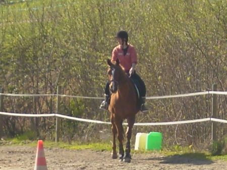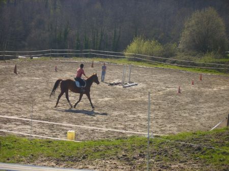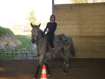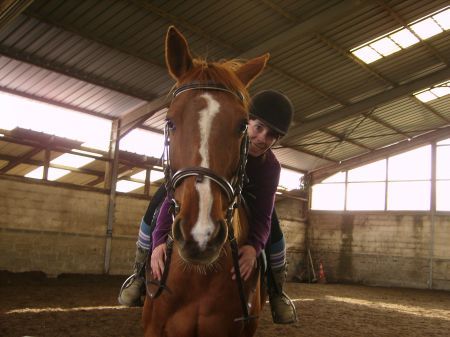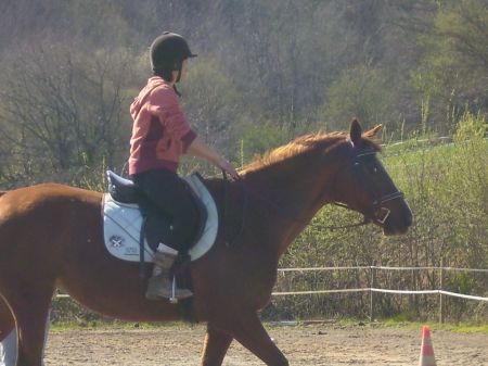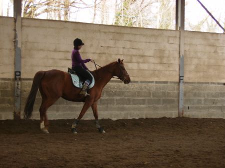 | Dire merci | Quelques news... Vendredi j'ai joué à "gérante de CE" et je suis revenue le soir chez moi sans jambes, sans bras... j'en pouvais plus! Ca occupe de s'occuper d'un CE avec une cinquantaine de chevaux! J'ai quand même trouvé le temps de faire mon cours particulier avec poupétasse! Quelques photos... Début de séance pas encore très concentrée! ![]() Allez hop un peu de trot ![]() Exercices d'assouplissement : agrandir et rétrécir un cercle et Mlle n'est pas encore trop souple... ![]() Petits exercices de cession de mâchoire ![]() Et voilà! Pour finir : nos tronches de garce ![]() |