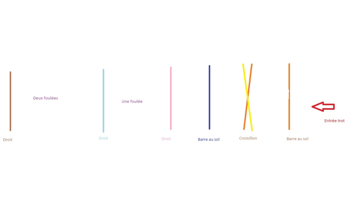 | Dire merci | Scooper avait tendance par contre à prendre une foulée de galop avant la 1ere barre au sol mais la monitrice m'a dit de laisser faire car il est intelligent et ça lui permettait de tout passer sans trop forcer donc j'ai eu confiance et j'ai laissé faire C'est clair c'est beaucoup plus facile pour eux de trouver leur place au galop, il l'a vite compris |