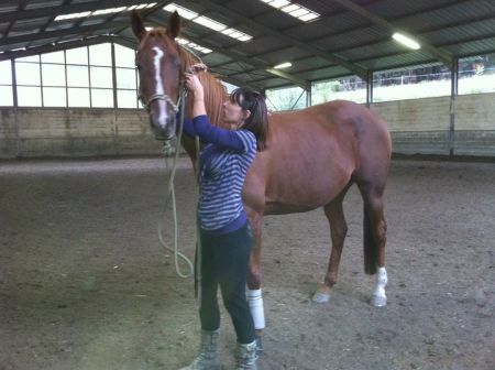 | Dire merci | au début elle ne l'était pas du tout puis je l'ai poussée au trot sans qu'elle tombe dans la précipitation et ça allait mieux mais je sens que ça lui demande un effort particuler... Faudrait que je vois en selle ce que ça donne! Chose bizarre, elle engage mieux à droite qu'à gauche mais faut rappeler qu'elle est gauchère ![]() |