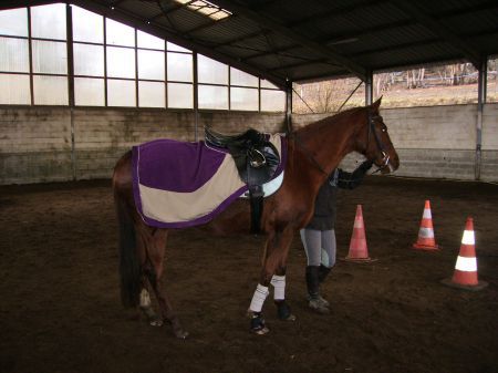 | Dire merci | Pas de cours collectif ... Poupette a perdu un fer! ![]() Je l'ai donc juste montée à cru dans le manège pour voir sa réaction face au bruit de tous les montres qui hantaient le manège hier soir! Elle a été sage avec moi sur son dos! Ferrage aujourd'hui! Heureusement, c'étais prévu comme ça! |