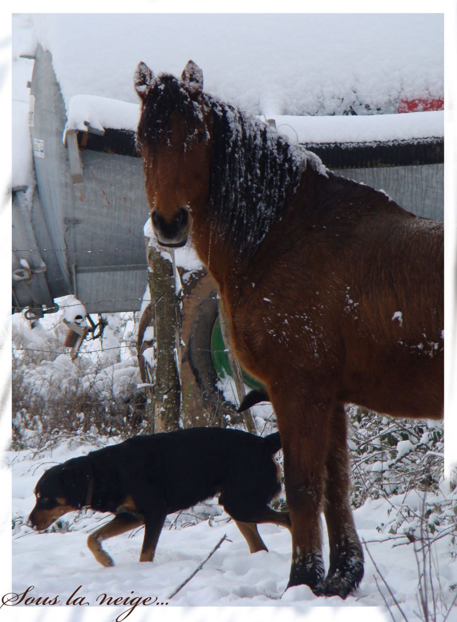 | Dire merci | j'adore vraiment les photos de chevaux sous la neige c'est beau ! |