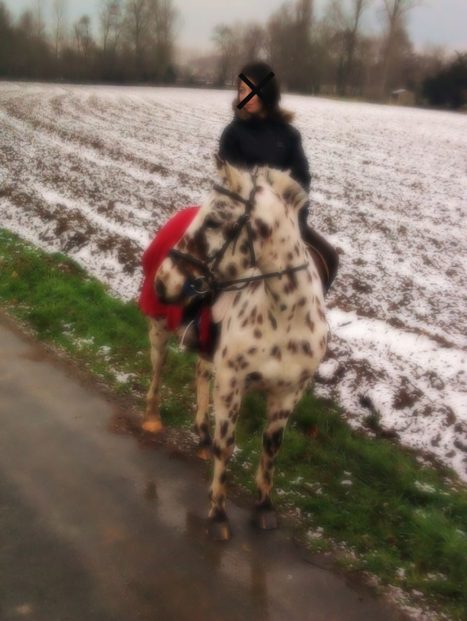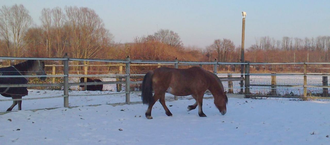 | Dire merci | ![]() , adore la neige... Bon galère car plus d'herbe a grignoter alors foin foin et foin Et c'est bien la neige car on retrouve facilement le poney ! on suit les traces ! Sinon ses réactions c'est fouiller la neige ! |