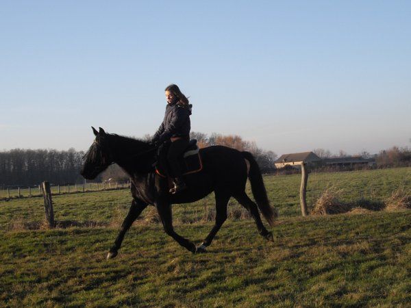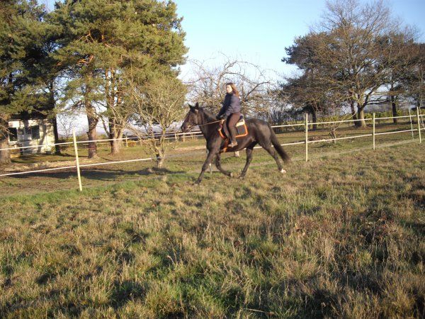 | Dire merci | osmose a 8 ans maintenant ... Elle est toute " neuve " car debourrée à 4 ans et ensuite travaillée pendant ses 5-6 ans que le week-end ! Après elle faisait que quelques ballades de temps en temps ! voilà, voilà ... Avant hier je l'ai bossé sur le plat : lançades, sur lançade pfiouuu et elle a de la force la cocotte ^^ , enfin ça va aller à partir de lundi je vais la monter tout les jours ! |