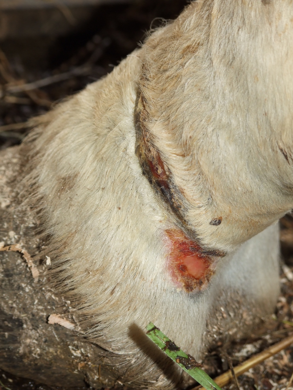 | Dire merci | la plaie cicatrise bien il reste encore l'arrière à fermer, j'ai insisté lors du dernier pansement à cet endroit, j'espère que cela va porter ses fruits... |