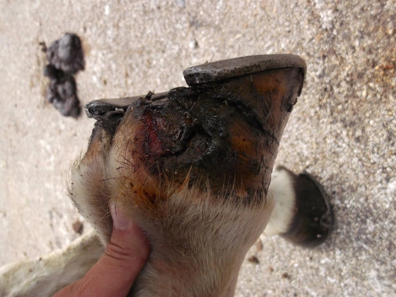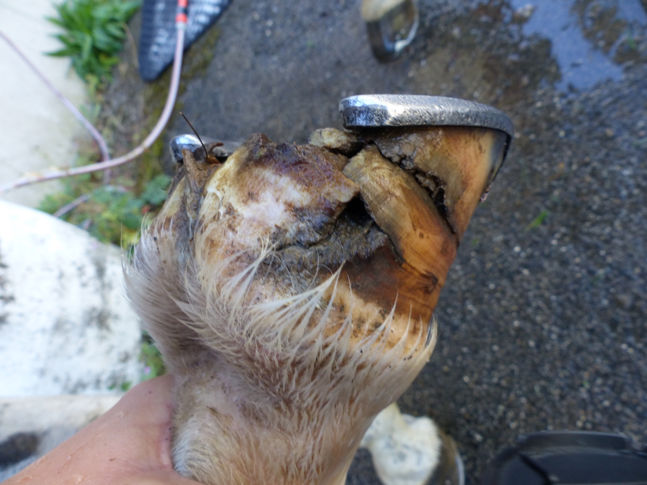 | Dire merci | un truc idiot mais je laisserais le fer, là il soutient la structure, qui se retrouvera direct au sol si pied nu..... pis bon pour des cas comme ca, grand nettoyage et colmatage au mastic à sabot (on a eu le cas petite sur une des jujus à l'élevage, mais elle pour la peine, elle a un trou à vie ) |