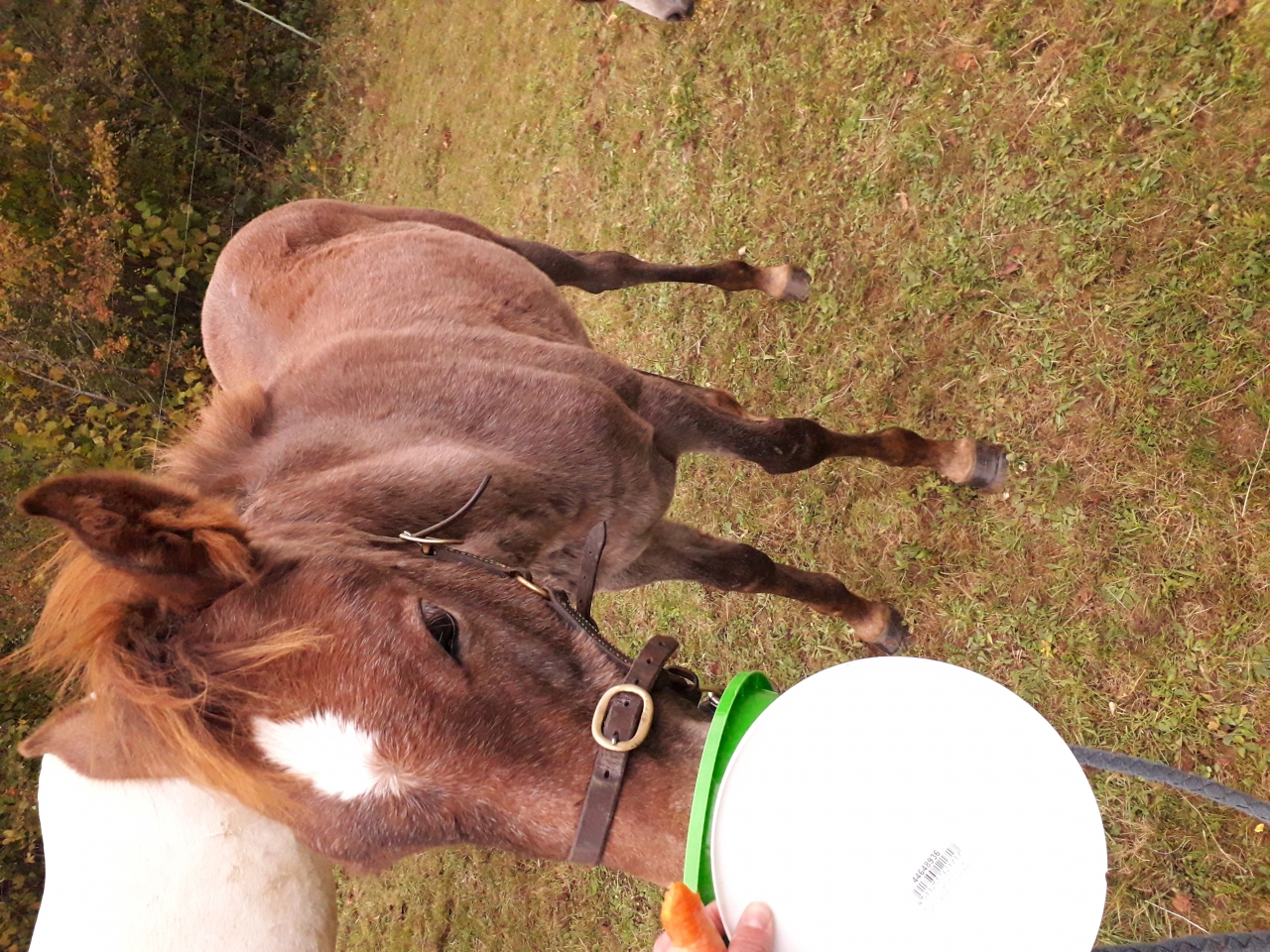 | Dire merci | hier mise du licol avec l'aide de madame carotte puis pendant que monsieur mangeait, j'ai pu prendre chaque pied et les tenir 5-6 secondes![]() ![]() avec son plumeau ![]() |