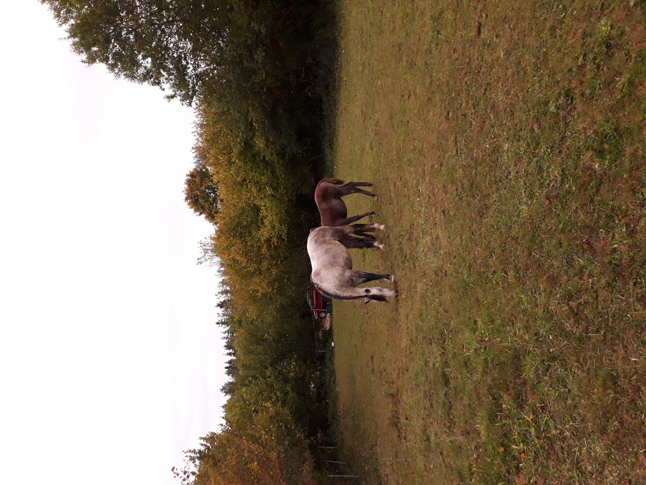 | Dire merci1 | Avant dernière page : injection d'immunothérapie pour Naska Dernière page : 1ere course de Qoumir 2006 Après avoir rencontré Iris qui me permit d'aller jusqu'en 160km en endurance...réalisation d'un rêve : une arabe...Quiara de la Loze que j'achète à ses 23 mois Nous apprenons beaucoup ensemble, elle me suit dans mes idées + ou - farfelues et me donne en retour sa confiance aveugle malgré son carafon de "poney arabe" mais à nous les rigolades, les grandes sorties, le trec et... l'endurance ! Juillet 2008, je vais voir une arabe russo-polonaise de 11ans, Nastassja de Pawi dite "Nati". Ce sera Elle, la nouvelle élue pour la réalisation d'un projet qui me tient à cœur : produire quelques poulains bons et beaux ! Elle nous offre un adorable poulain en 2010 : Nahym, qui partira rejoindre sa nouvelle famille en août 2011. Puis Nati s'offrira une jolie qualification en endurance sur 130km en avant de prendre sa retraite sportive. 2012 : Nati part en location poulinage et Djati naît en mars 2013, au sevrage de celle ci, fin septembre 2013, Nati rentre à la maison ! 2014 : Nati retourne à la saillie début mai pendant que Quiara reprend le chemin des courses après l'année précédente maudite où la perte de son bout de queue puis des soucis de selle nous ont gâché la saison... 2015 : Quiara se blesse au parc, on dit aurevoir à nos rêves de courses d'endurance et petite Naska arrive le 16 avril après pile 11 mois et 11j de gestation. 2016 : Nati retourne en contrat poulinage Quiara fait son retour en course en gagnant la 1ère course à laquelle elle participe avec Deydou39 : une 80vl fin mars puis fin juin elle doit être mise au repos, la saison de course est encore stoppée cette année pour nous ![]() 2017: Nati a pouliné d'une pouliche : Hadjira. Elle rentre en novembre à la maison et Quiara fait 130km seule au monde avec moi en course, oublié son accident qui failli lui couter son antérieur ! 2018 : Naska correspond tout à fait à ce que je voulais comme relève. Nati fait de la prom prom et Quiara après avoir gagné sa 1ère course de la saison qui devait nous ouvrir les portes de notre 160 se blesse et se fait une desmite... ![]() Fin 2018 : La boucle est bouclée, Nati retourne dans son élevage afin d'offrir la relève de sa lignée à son naisseur. mais en 2020 perd la vie à la naissance de Nasdrovia. Naska reprend tranquillement le chemin des sorties et Quiara va à la saillie .... Naska obtient sa première qualification en endurance sur 20km puis sur 40km. 2021 Naska se requalifie sur 40km puis 2 fois sur 60km & Qoumir (fils de Quiara et de Ofir al Hfifa) fait son arrivée parmi nous, un grand mâle gris timide et malicieux à souhait ![]() 2022 Naska commence l'année avec une cyatosmose larvaire mal traitée et diagnostiquée... on pense la perdre mais grâce à de précieux conseils venus du forum, elle remonte la pente et gagne en juillet sa première 80km (87km en réel) à notre grande surprise ! Qoumir part dans sa nouvelle famille en avril et Quiara est remise à la saillie mais elle ne prendra pas...En novembre, Naska obtiendra sa 2ème qualification sur 80km, une course technique où elle ne déméritera pas 2023 : la saison d'endu se prépare pour Naska et nouveau et dernier prétendant pour Quiara qui nous fait tourner encore en bourrique pour ne pas prendre... 2024 : après un début d'année sympa avec qq cso Quiara se fait une atteinte de la bride carpienne et du suspenseur en faisant la con au parc... elle reprend le boulot tranquillement mi aout après 5 mois de repos Naska continue les sorties après avoir été mise en pause par la fédé d'endurance suite à ses 3 éliminations consécutives pour boiterie, n'ayant rien nul part, on suspecte de fortes douleurs ovariennes qui la feraient boiter.. 2025 il aura fallu retenir 4 prétendants pour n'en avoir qu'un pour Quiara cette année, affaire à suivre, c'est la der des der... Naska se fait opérer en janvier d'un sarcoïde mal placé et reprend l'entrainement, on espère résoudre ses irrégularités d'allure par la suppression des chaleurs. Juillet 2025 : Naska m offre sa deuxième qualification sur 100km et enchaîne une immunothérapie pour une tumeur sous la paupière Quiara me fait à nouveau la joie d être pleine pour mi mai 2026 ❤️ Message édité le 30/09/25 à 20:13 Message édité le 18/11/25 à 14:53 |