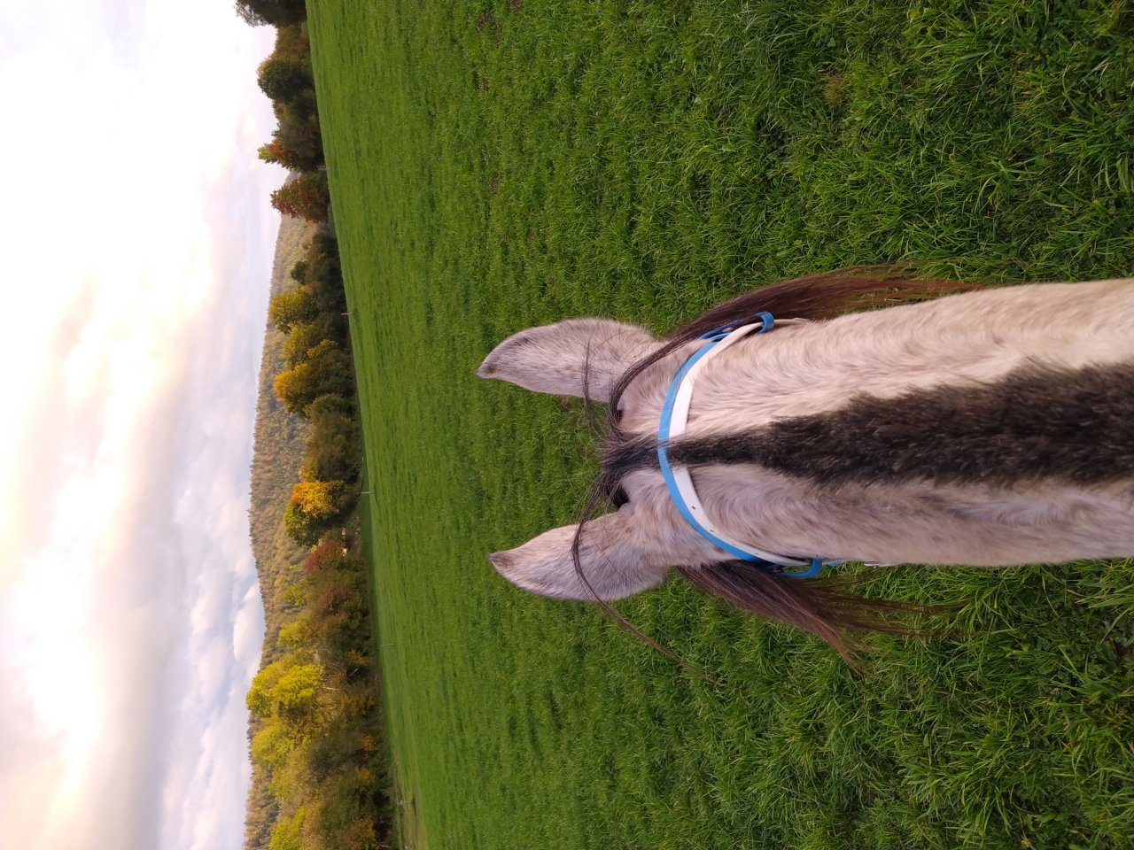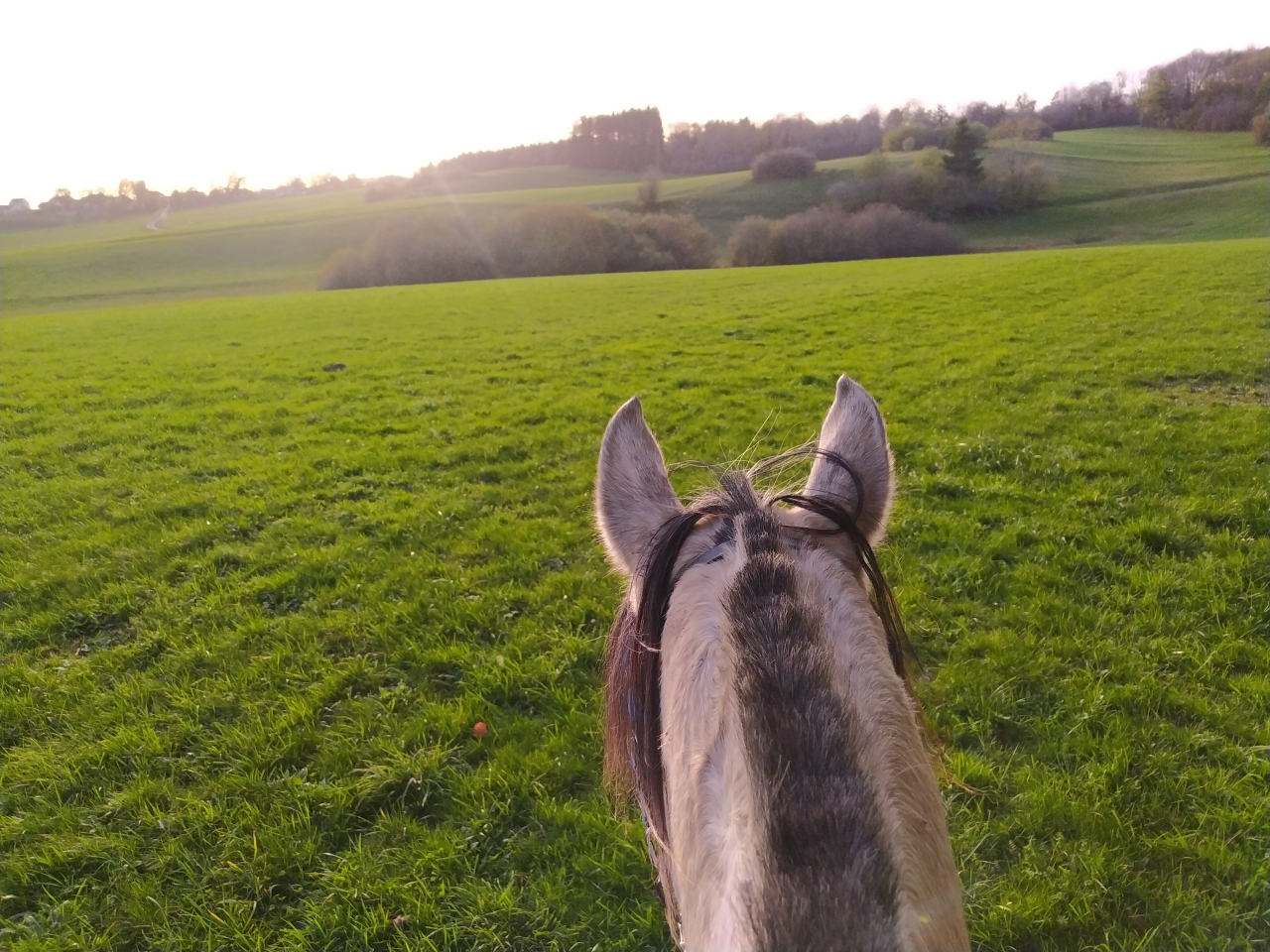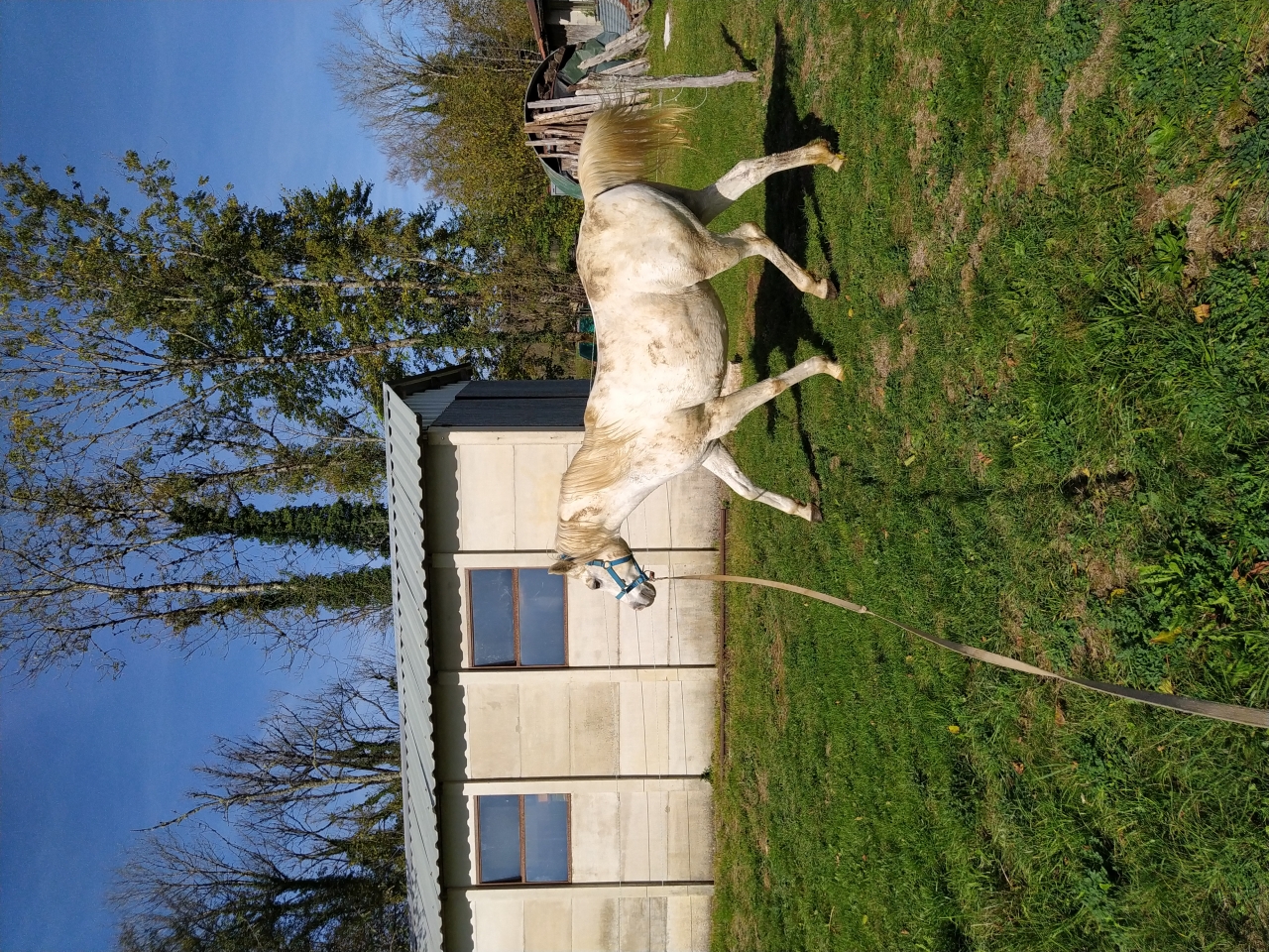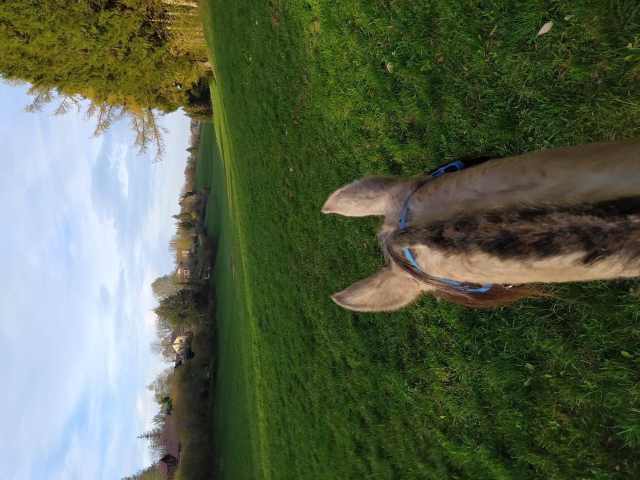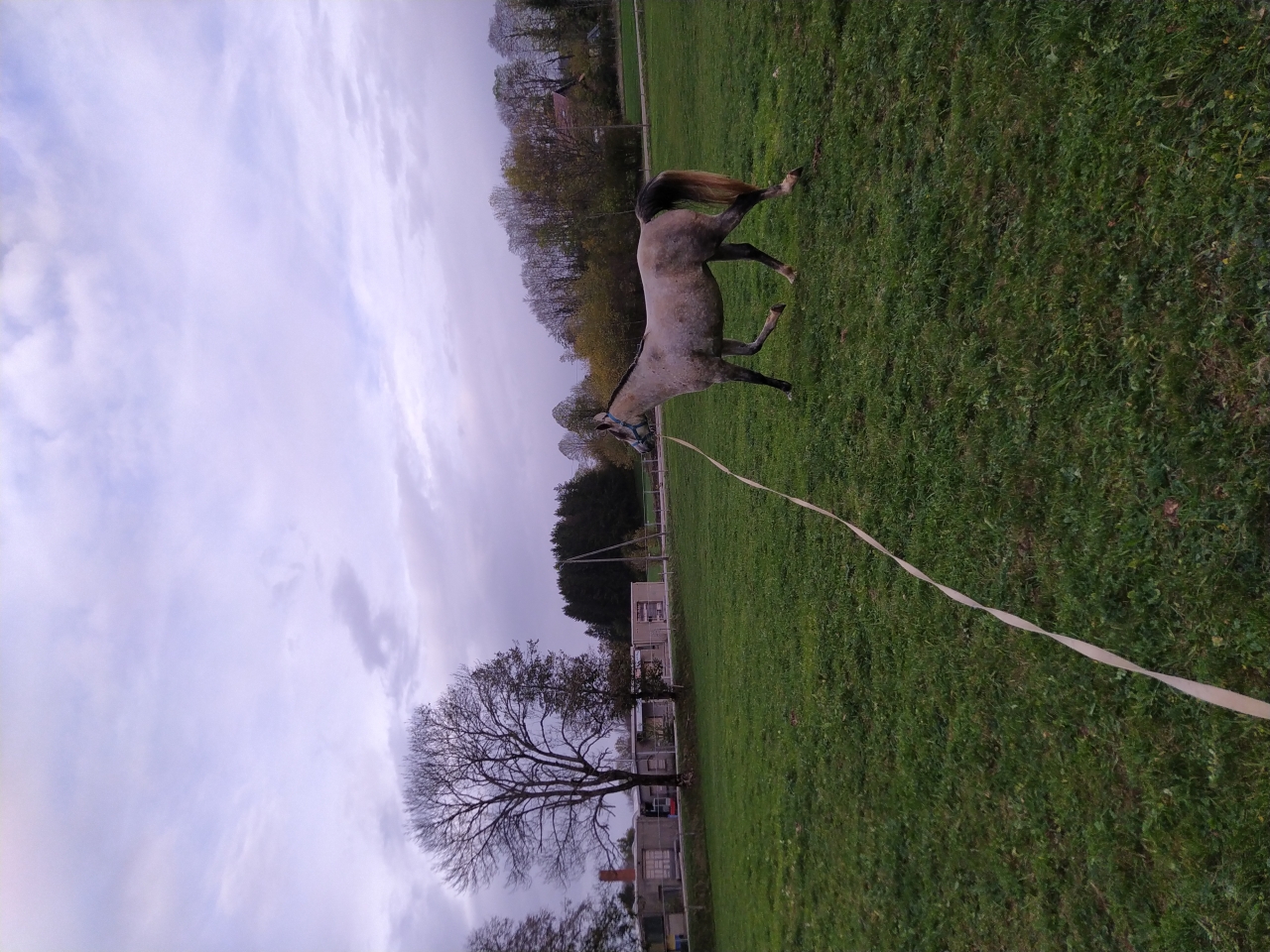 | Dire merci | Ode, qui, je pense, découvre un peu la longe "studieuse" avec moi, c'est aussi nez au vent en général. Elle peut pas trop renier l'arabe. Mais bon, ça viendra, pour le moment je lui demande juste de comprendre ce que je veux et d'être calme. |