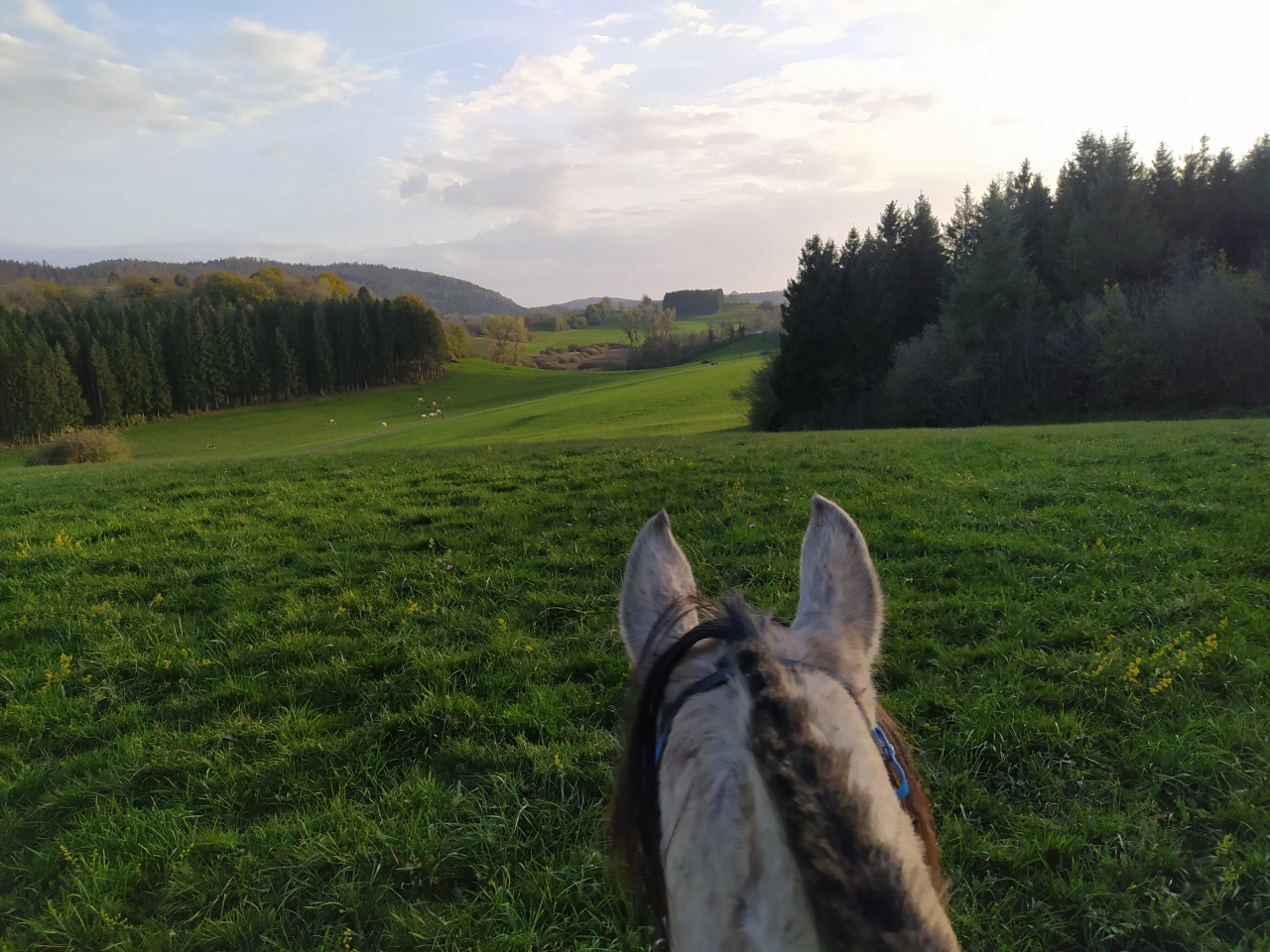 | Dire merci | hier, un trou dans ma journée à 17h30 alors hop on profite que le temps se tienne et c'est parti ^^![]() c'est un peu gras mais ca va ![]() comme elle est en mode "tout m'effraie" et bien je la mets dans le jus ![]() ![]() ![]() ![]() bon j'ai eu droit à un peu de joie au milieu du champs qui venait d'etre fumé, j'ai eu chaud puis je descend et on rentre tranquille 16km en 1h35 ![]() |